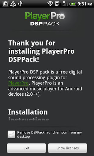 For 2.3 and later devices, PlayerPro uses by default the built-in Android audio effects. It is thus not mandatory to install the DSP pack. Nevertheless, you may still want to try out the DSP pack for the following reasons: