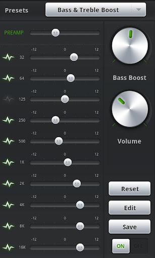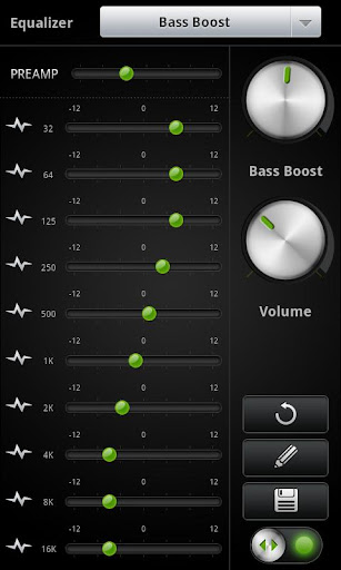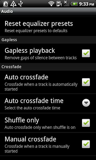 * The equalizer settings are available via the option menu and on the default player screen.